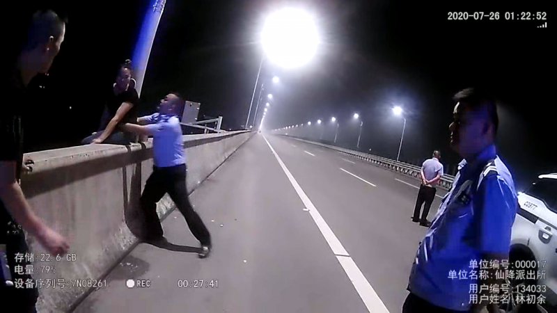 “如果将车停在远处,步行接近轻生女子,一定会被发现并止步。”朱旭曦说,“于是我们利用桥上通行车辆的掩护,直接将车停在了女子所在处,为下一步救援创造了有利条件。”