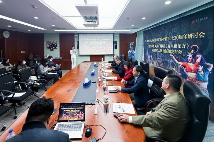 12月2日,“五星出东方利中国”锦护臂出土30周年研讨会暨“中华风韵”舞剧《五星出东方》赴加拿大演出见面会在北京举行。