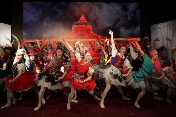 2月18日,在日本东京,松山芭蕾舞团的演员在东京塔内表演节目,为中国抗击疫情助威加油。当日,日本东京地标建筑东京塔点亮“中国红”,为中国抗击疫情加油。松山芭蕾舞团等演出团体也在东京塔内献上演出,支持中国抗击疫情。