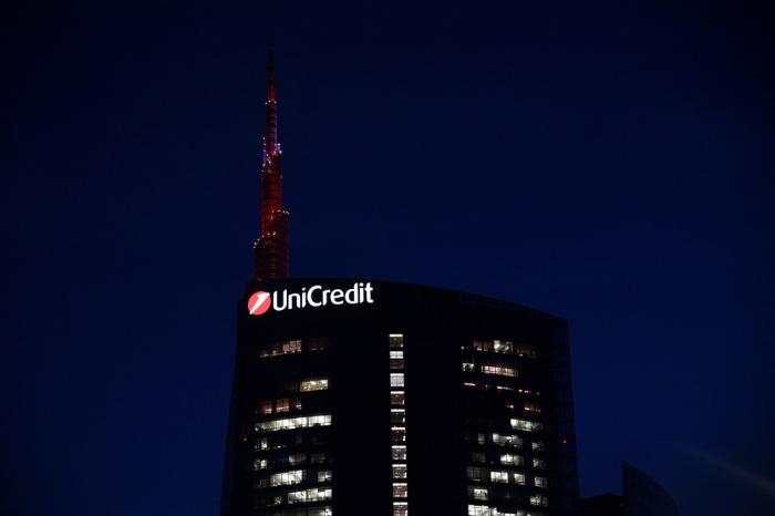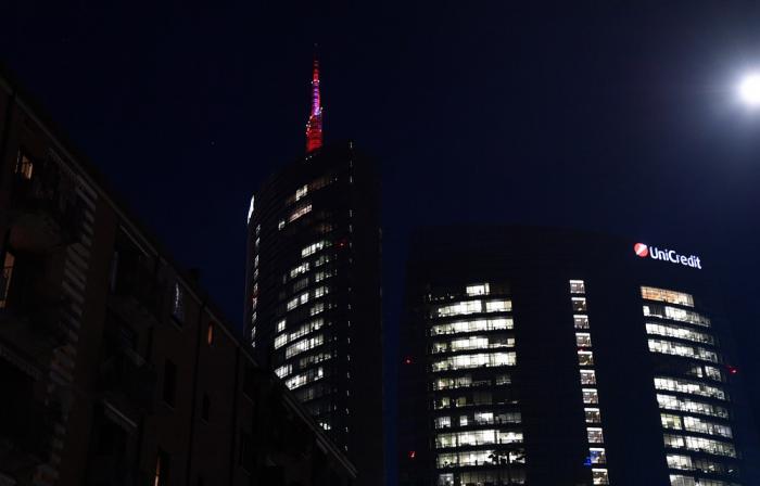 2月11日在意大利米兰拍摄的裕信银行塔。