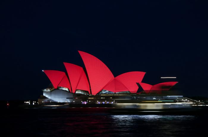 2月11日,澳大利亚悉尼歌剧院亮红。当日,为庆祝农历牛年新春,澳大利亚新南威尔士州多元文化部在悉尼港举行悉尼歌剧院亮红仪式。