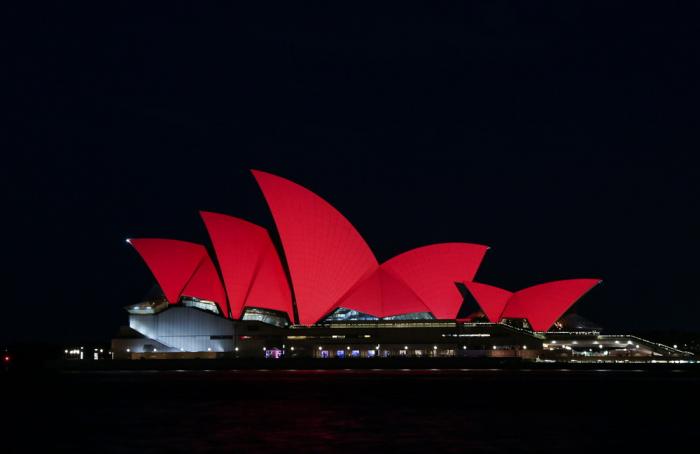 2月11日,澳大利亚悉尼歌剧院亮红。