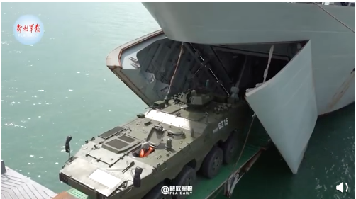 6月11日,《解放军报》在微博发布消息称,第72集团军组织部队展开装载航渡演练,探索各种复杂海况环境下快速装载、远程航渡,提升部队远程投送能力。