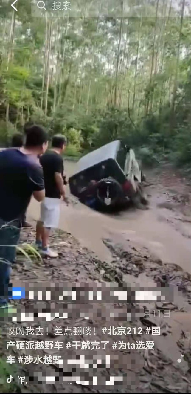 也有车友为寻求刺激会选择河道更深、水流湍急的河道。一位网友6月11日发布的视频显示,其驾驶越野车驶过一条水流很急的河,最深处水位已没过车身三分之二,该网友还配文“过河差点起不来。”
