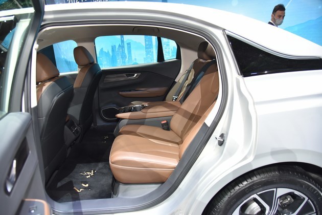 后排扶手放下后,可以看到后排座椅、媒体控制区,很显然这台车主要的服务对象是后排乘客。