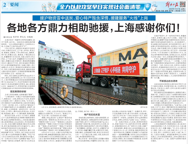 上海官媒曾刊文称,对于全国各地驰援的物资,和爱心单位、爱心企业的捐赠物资,更要在运输、分发等环节妥善处理,绝不能让献出爱心的人们寒了心。