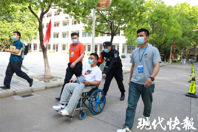 盐城两考生骨折坐轮椅赴考,民警暖心“搭把手”
