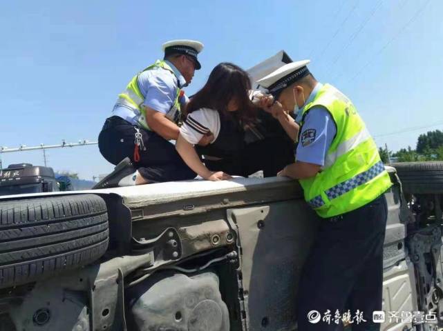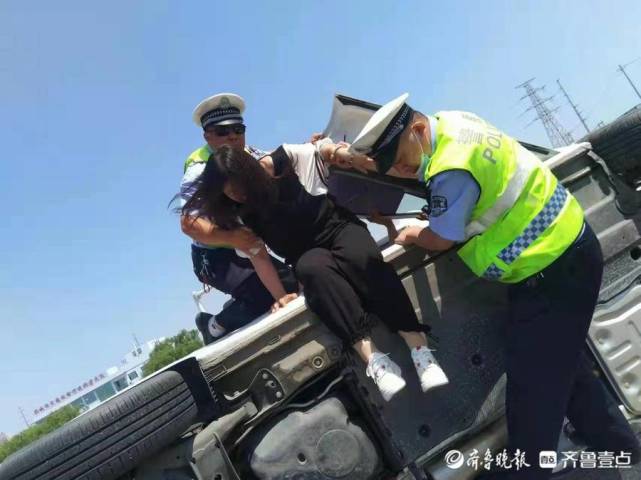 6月7日上午10时40分左右,泰安交警肥城大队机动中队执勤民警辅警巡逻至泰肥一级路与潮汶路路口时,发现前方一辆白色的小型汽车撞在道路中间的防撞拦发生侧翻,民警立即停车开展救援,成功救出卡在驾驶室内的驾驶员。