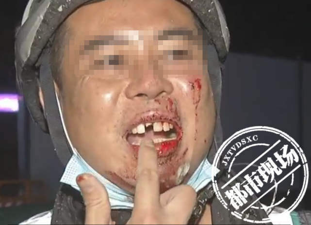 南昌市民 秦先生:警示牌跟围挡之前没拉过来的,当时没有任何提示的,也没有施工的警示牌,什么都没有的,正常路面一样的。然后我们骑过去,下面是坑啊,我电动车卡到一下,然后就(摔)下去,下颌整个摔下去了。