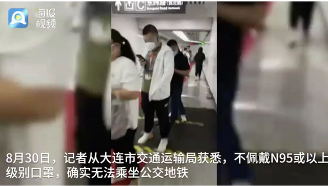 对此,大连市交通运输局及大连市12345热线告诉媒体,不佩戴N95或以上级别口罩,确实无法乘坐公交地铁,但并没有相关通知要求,对不佩戴N95口罩乘坐公交地铁的乘客赋“黄码”。