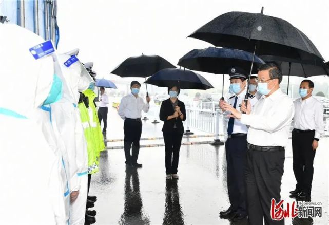 10月1日,河北省委书记倪岳峰、省长王正谱到西柏坡高速霍寨检查站,详细了解疫情防控情况。