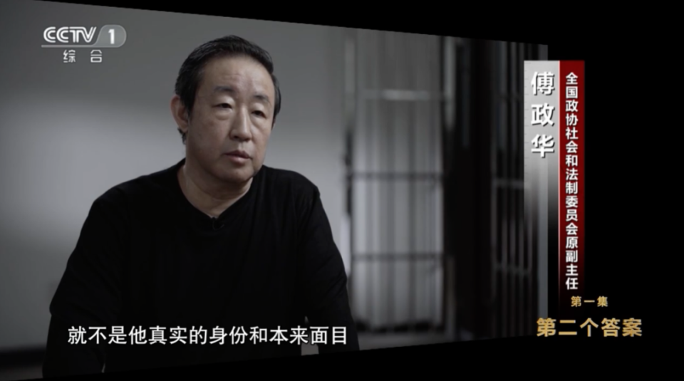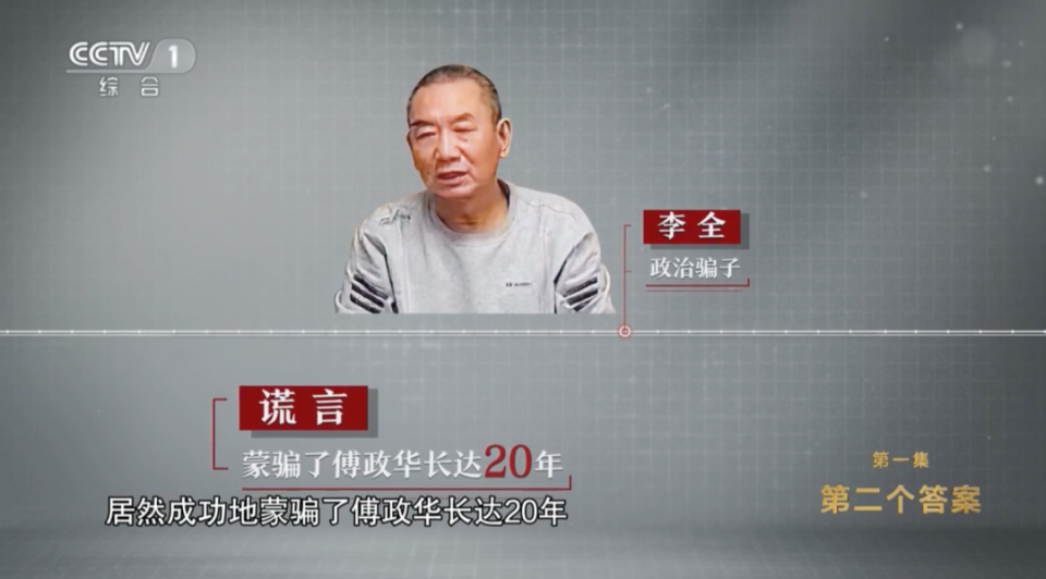 双开通报中指出,傅政华长期结交多名“政治骗子”。专题片中,两名傅政华结交的政治骗子出镜。一人是北京市公安局退休干部吹嘘自己有关系实则是忽悠,另一人是只有中专学历但把自己包装成专家学者的骗子,他蒙骗傅政华长达20年。
