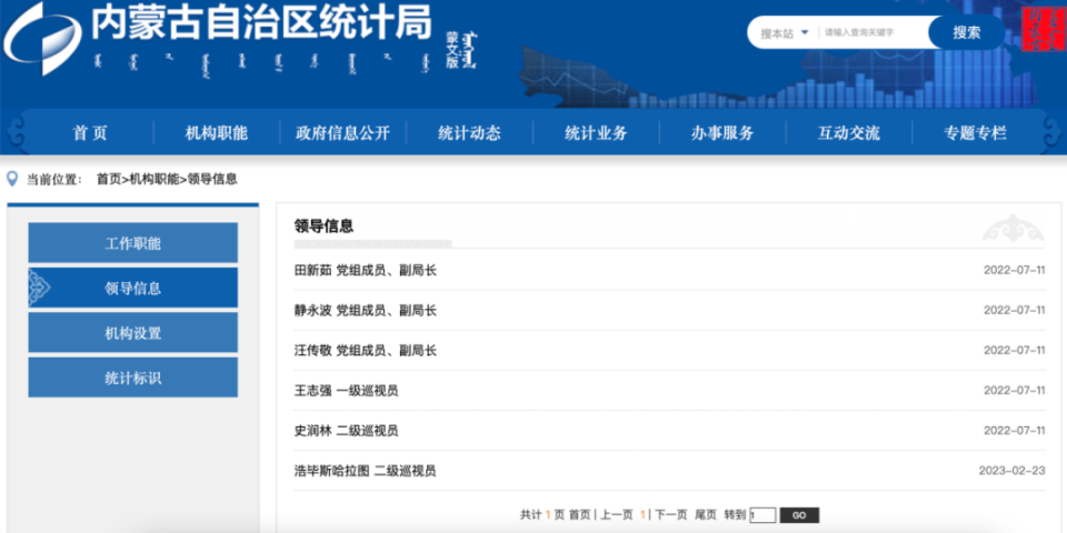 今年3月1日,就有媒体报道,内蒙古自治区统计局官网“领导简介”一栏已于近日更新,此前担任自治区统计局党组书记、局长的潘志峰,简历已被撤下。