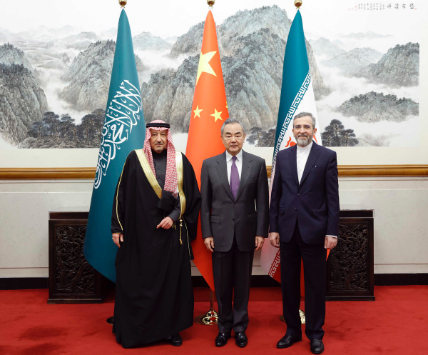 3月,沙特国务大臣兼国家安全顾问艾班和伊朗最高国家安全委员会秘书沙姆哈尼分别率两国代表团在北京举行对话。两国同意恢复外交关系,开展各领域合作。4月,沙特外交大臣费萨尔和伊朗外交部长阿卜杜拉·希扬在北京举行会晤,这是两国最高级别外交官员7年多来的首次正式会晤。