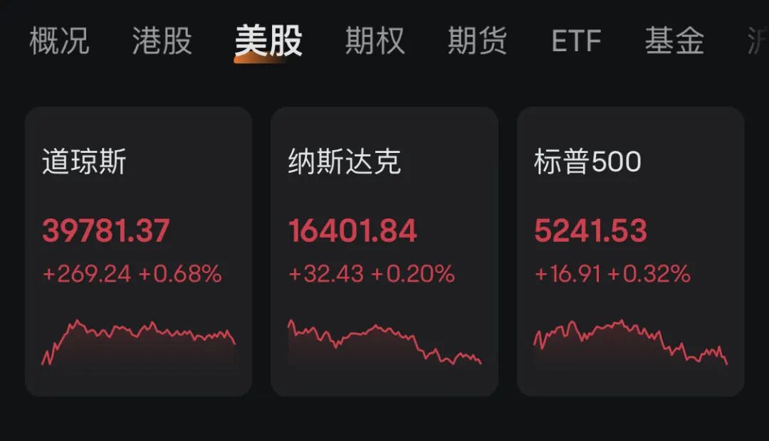 周四(3月21日),美国三大股指全线收涨,截至收盘,道指涨0.68%报39781.37点,标普500指数涨0.32%报5241.53点,纳指涨0.2%报16401.84点,美国三大股指续创历史新高。