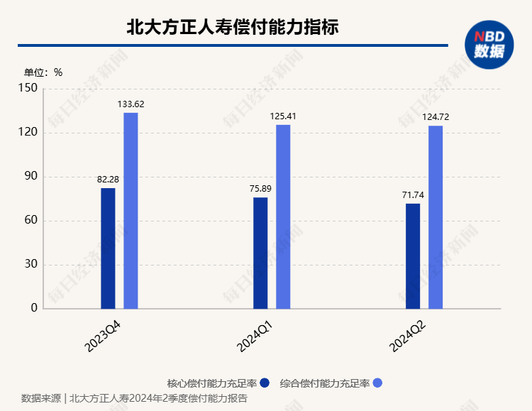 随着去年末公司完成17亿元的增资,截至2024年第二季度末,北大方正人寿核心偿付能力充足率、综合偿付能力充足率分别为71.74%、124.72%,已达到监管要求。
