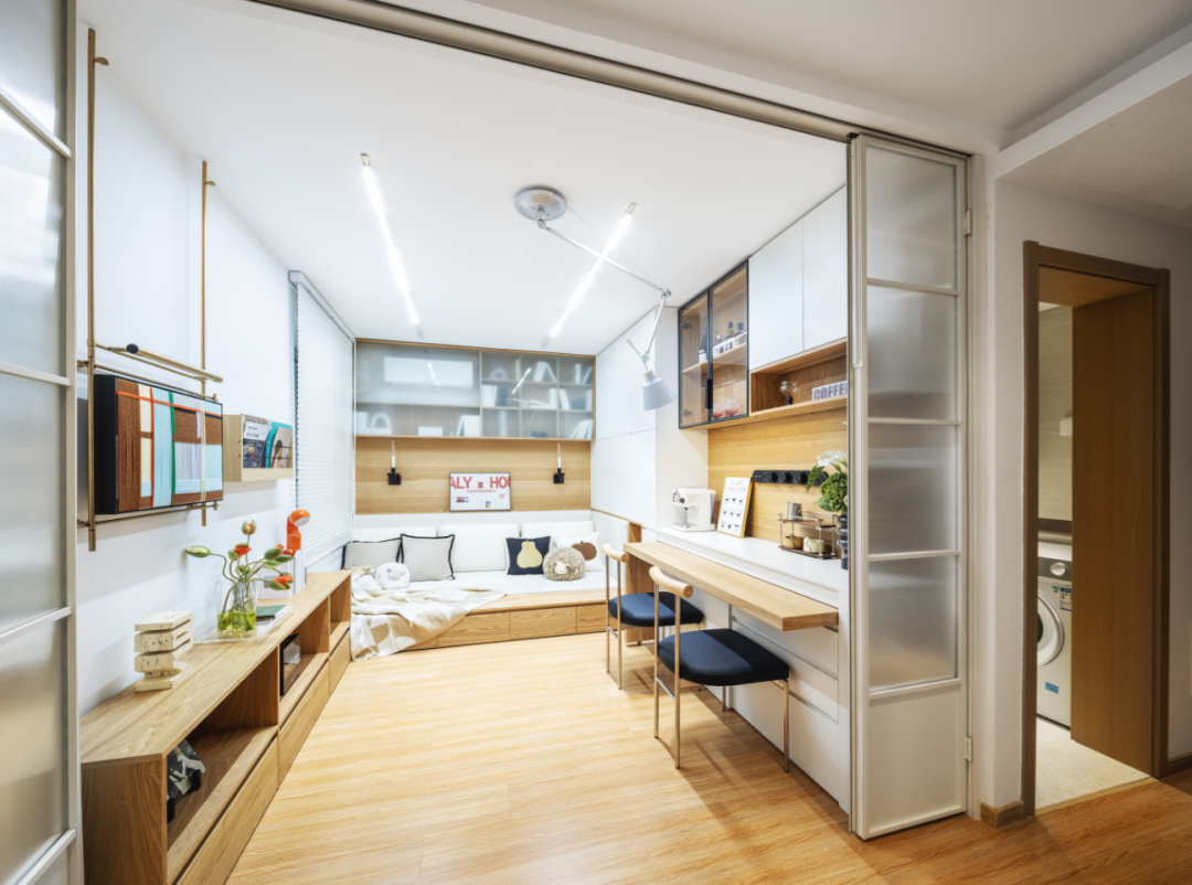 这种“既买得起又住得好”的实践,正是首创城发以国企匠心助力青年置业的最佳诠释。这一点在65㎡的一室一厅户型中体现得淋漓尽致:该户型的客餐厅面宽达到了同尺度产品中少有的5.6米,为“1+X可变空间”创造了条件。在不影响客厅核心功能的前提下,通过灵活的墙体设计,这个X空间可随人生阶段而变化——单身时作为“女王衣帽间”或电竞房;结婚后成为独立书房;三口之家时则能变为舒适的儿童房。