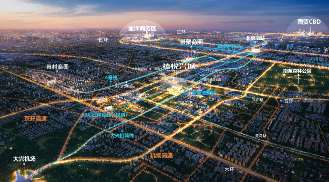 以这样全维生活社区理念开发的禧悦兴城,自规划之初便深入洞察青年群体的真实需求。项目距地铁大兴新城站仅约200米,以步行即达的优势,构建了高效通勤主场,实现“出家门即入站台”的无缝衔接。从地铁大兴新城站上车,搭乘时速约160公里/小时的机场线,向北约7分钟即可一站直达草桥站,轻松换乘10号线、19号线,快速通达国贸、金融街、丽泽等城市核心区域,真正将三环生活纳入日常通勤圈。