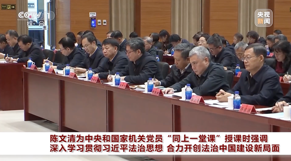 12月8日,中共中央政治局委员、中央政法委书记陈文清在京围绕“深入学习贯彻习近平法治思想 合力开创法治中国建设新局面”为中央和国家机关党员“同上一堂课”作专题辅导。