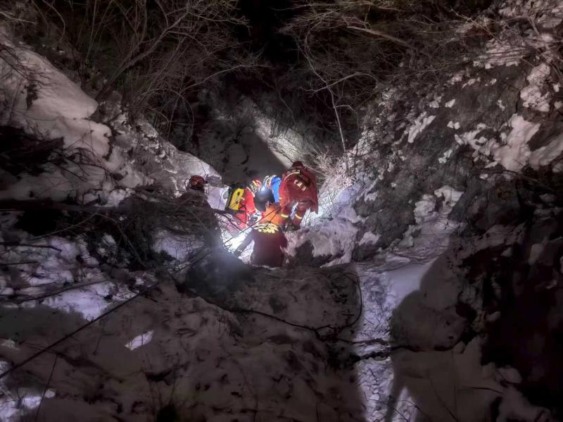 北京门头沟消防冒雪进山 跨昼夜营救两名被困者