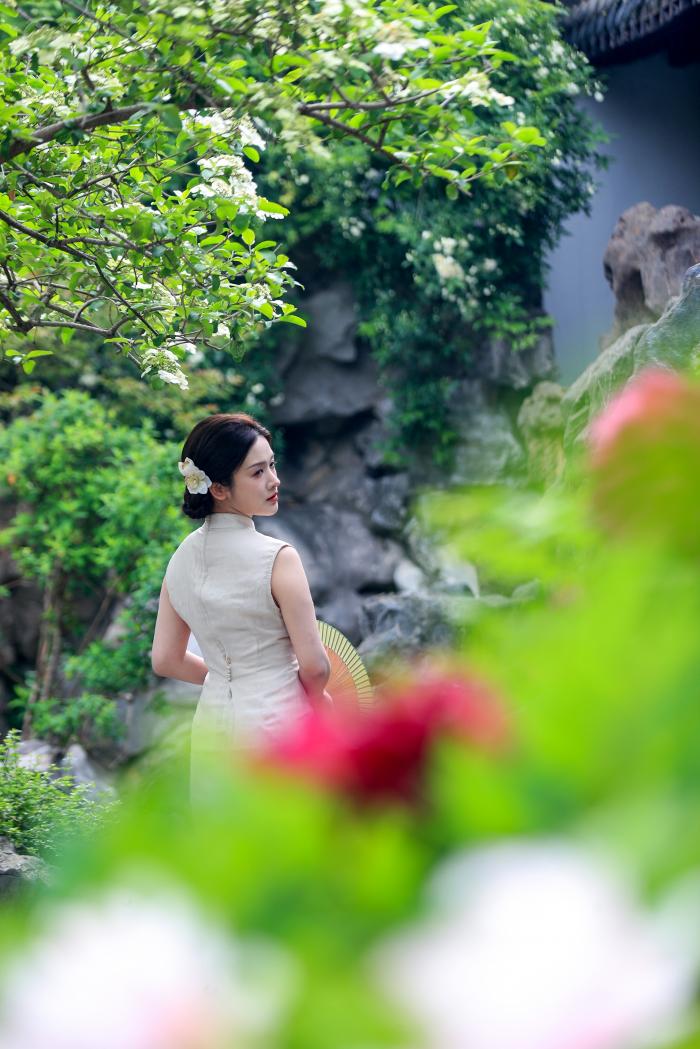 4月11日,游客在江苏扬州何园赏花拍照。新华社发(齐立广摄)