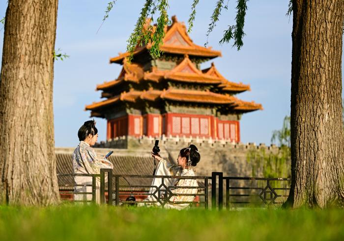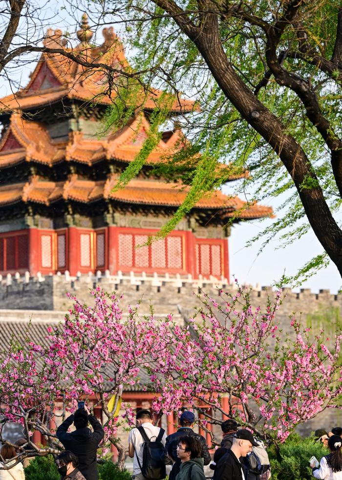 4月11日,游人在北京故宫西北角楼附近拍照。新华社记者 陈晔华 摄