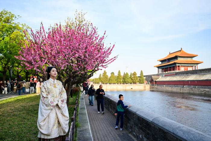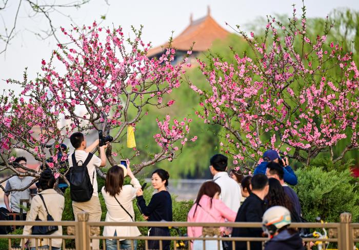 4月11日,游人在北京故宫神武门附近拍照。新华社记者 陈晔华 摄