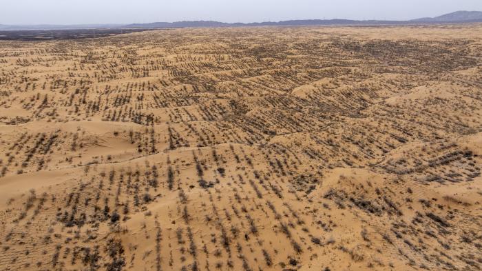 草方格+锁边林+光伏板 三重防线构建生态治沙新模式