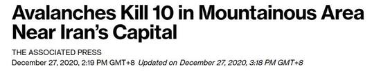 外媒:伊朗发生多起雪崩事件,已致10人死亡