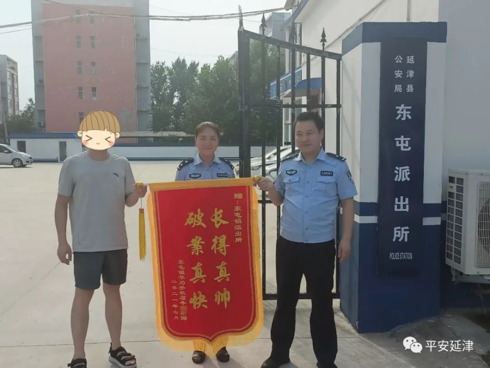 7月14日上午,新乡市延津县东屯镇一手机店的牛老板来到东屯派出所,给小史警官送来一面锦旗。小史警官一看,笑了:“嚯,说得真对,没毛病!”