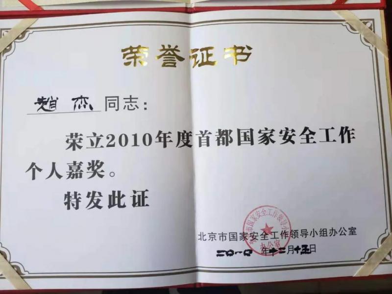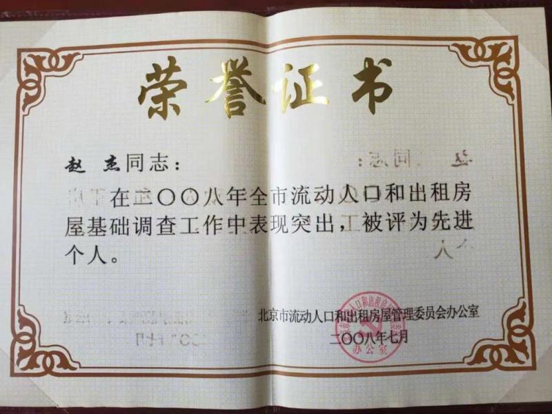 2008年,赵杰被评为“北京市流动人口和出租房屋基础信息采集工作先进个人”,科室被评为“北京市流动人口和出租房屋基础调查先进集体”。