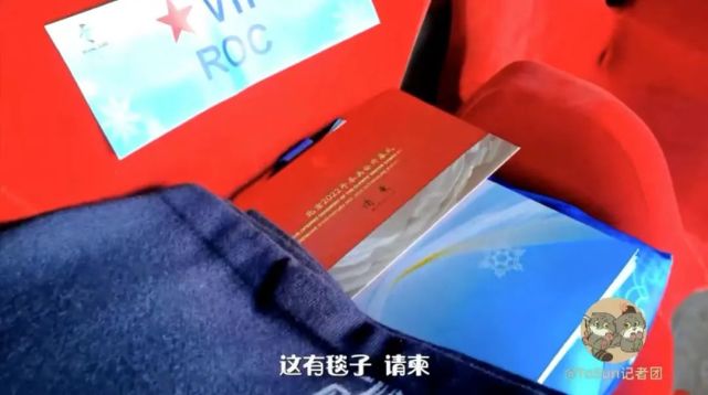 画面中出现的ROC是俄罗斯奥委会(Russian Olympic Committee)的英文缩写,前排标明“VIP”的座位就属于普京。座位上放着毯子、请柬、节目册还有一个手提袋。