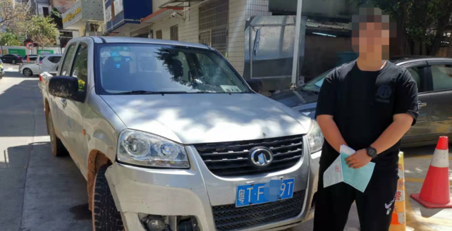 齐警官先绕车进行检查,发现皮卡车车身锈迹斑斑,有多处划痕、凹陷,车内更是杂乱,安全带悬在半空,存在安全隐患。等他走到车后,发现皮卡的车尾灯也坏了,后车牌也没有悬挂。李某解释称这车是公司的,车牌也不知道是什么时候丢的。他跟公司报备过,可是也没人处理,久而久之,他也就没当回事了。