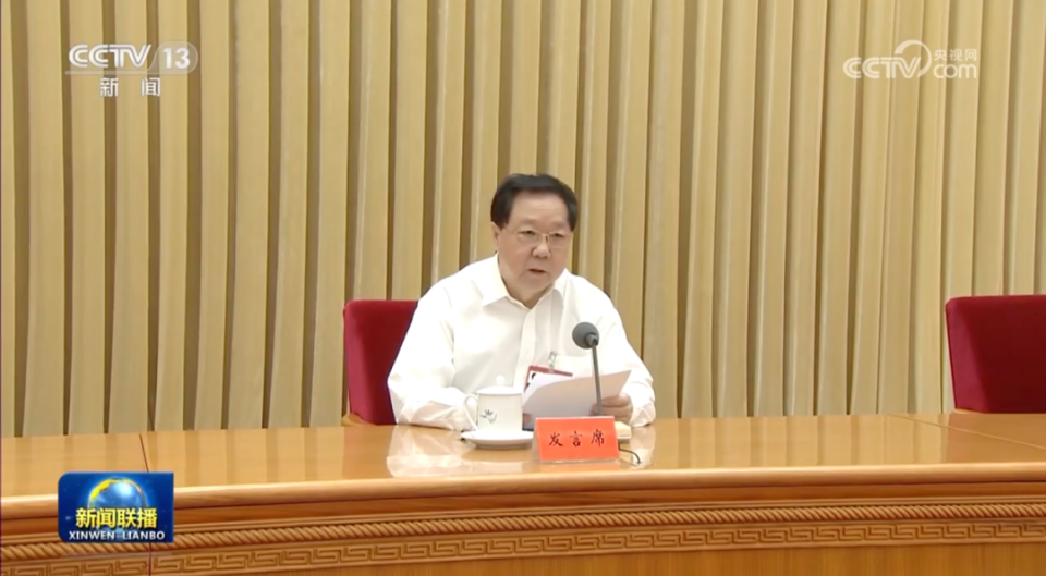 新闻画面显示,新疆维吾尔自治区党委书记马兴瑞、上海市委书记陈吉宁、天津市委书记陈敏尔、广东省委书记黄坤明等通过视频参会。
