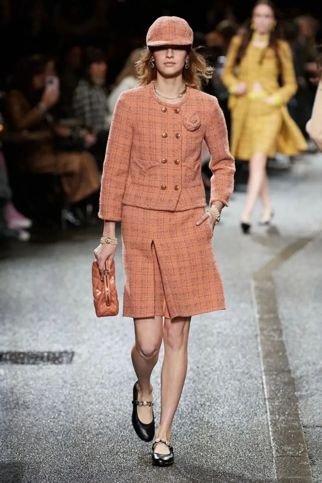 柔和桃大衣包裹白色内搭,将整个人衬托得更加柔和,如果你是春季型人,即暖调肤色,浅色的发色,更建议多尝试这个颜色,很衬肤色也能放大明媚活泼的特点。“peach fuzz”有桃子绒毛的含义,正如柔和桃搭配白色,一颗鲜嫩多汁的蜜桃与一层淡淡白色的小绒毛,给人一种视觉吸引力。