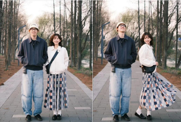 优衣库U系列的夹克,剪裁流畅,没有过多的装饰,藏蓝色和白色夹克简约随性,藏蓝色夹克适宜人群的年龄可以从18岁跨越到78岁,不知道读者朋友们有没有见爷爷穿过?女生穿的白色夹克同款搭配深蓝色格子拼接裙,深浅色呼应复古而时尚。