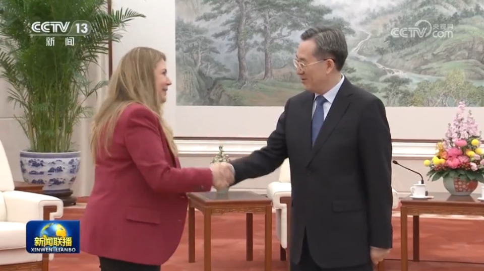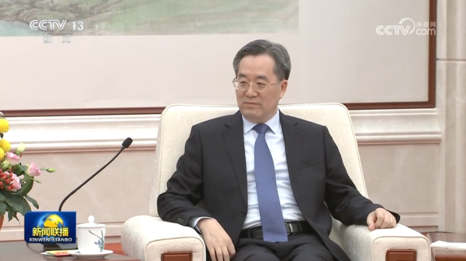 4月15日,中共中央政治局常委、国务院副总理丁薛祥在北京会见美国专利商标局局长凯蒂·维达尔。