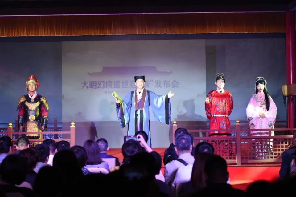 一场精心编排的国风演艺拉开了启幕盛典的序幕,为现场嘉宾与游客带来一场视听盛宴,瞬间将人们带入大明王朝的繁华盛景之中。