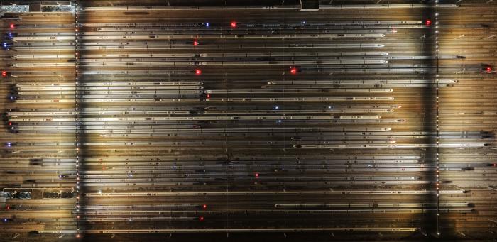 2月1日,动车组列车停靠在广州动车段存车场(无人机照片)。
