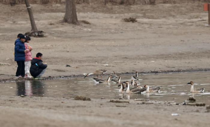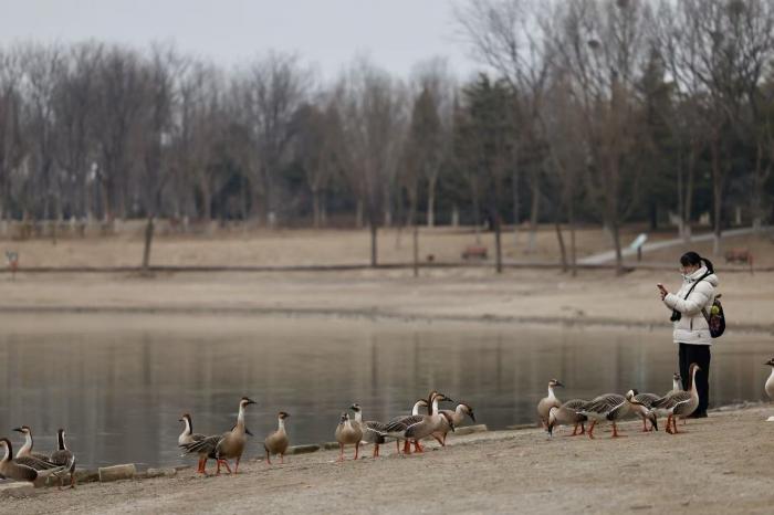 市民在南海子公园观赏野鸭。