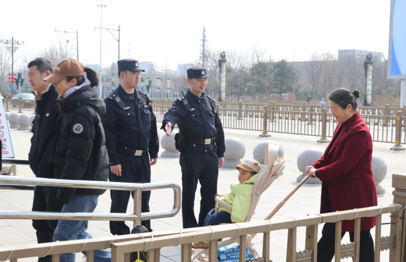 在入园高峰时段,南海子公园派出所增派警力与公园管理方紧密配合,加强门区疏导。当实时人流量达到阈值时,在公园一期、二期南门等主要入口迅速启动分流措施,设置临时分流栏,确保游客安全、快速入园,将管理的“绣花功夫”用在游客体验的关键处。