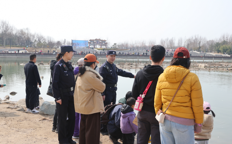 公园内水域广阔、景观亲水,随着气温回升、候鸟归来,湖边常聚集摄影爱好者与休闲游客。民警将巡逻守护重点向涉水区域、桥面、码头等部位倾斜,及时劝阻涉水拍照、随意投喂等行为,消除安全隐患,防止落水险情发生。属地派出所还协同园方完善安全警示标识,通过预防性举措,让水岸周边的“安全”成为常态。