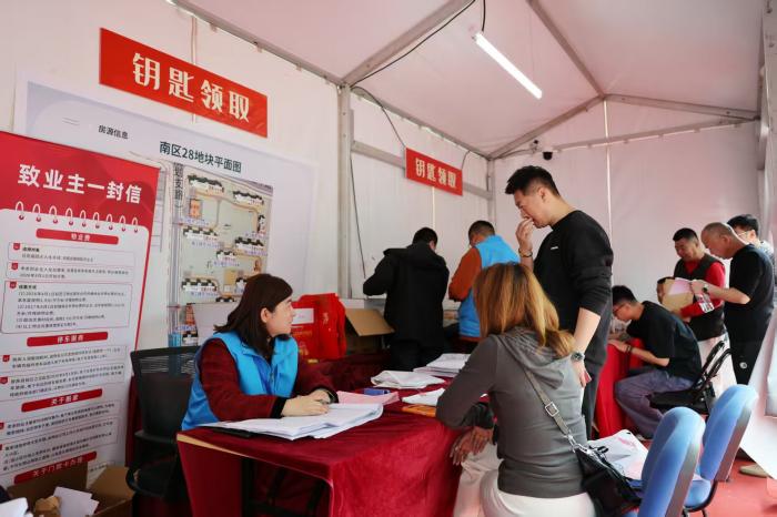 4月22日,北京青年报记者从北京建工获悉,大兴区重点民生工程——花园城市永定湾安置房项目近期正式交付。随着一把把新房钥匙交到居民手中,四千余户回迁家庭即将告别过渡期、入住新家园,圆了期盼已久的安居梦。