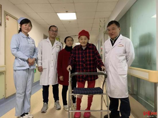 据医院医生称,通过院里的快速康复体系,老人原则上在手术第二天就能下地走路。考虑到唐婆婆年龄太大,在整个手术后的第三天,才开始让唐婆婆扶着助行器慢慢行走。