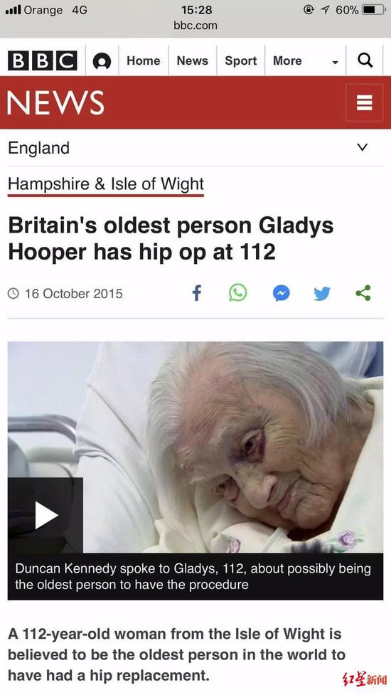 英国112岁老人接受了髋关节置换手术,创下世界纪录