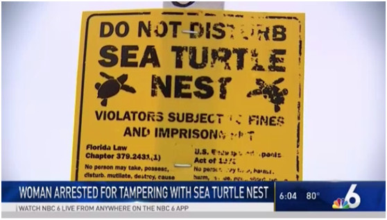 美国NBC新闻网援引迈阿密海滩警察局消息称,当地时间15日,一名中国籍女性在美国佛罗里达州迈阿密被拘,因其涉嫌非法在海滩上用木棍“猛戳”濒危海龟的窝,并“赤脚重踩”海龟保护区域。根据美国《濒危物种法》以及佛罗里达州法规规定,“伤害或骚扰”海龟窝和和幼龟是非法的。