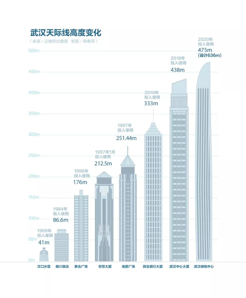 但是,从2010年后,武汉超高层高度提升明显加快,以武汉绿地中心636米的方案出炉为标志,超高层建设按下了快进键。