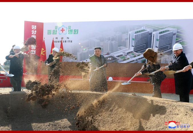 朝鲜最高领导人金正恩出席平壤综合医院奠基仪式