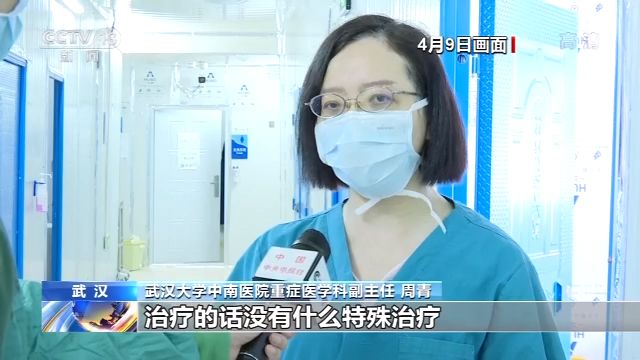 武汉大学中南医院重症医学科副主任 周青:5个轻的那些病人都不要紧,治疗的话没有什么特殊治疗,就是等待他们核酸结果是阴性的。二区这些(10位)重病人,下一步比较艰难的病人可能就是需要比较长久的一个治疗的过程,慢慢有些病人可能可以脱得了呼吸机,但是有些病人可能就需要长期的呼吸支持。