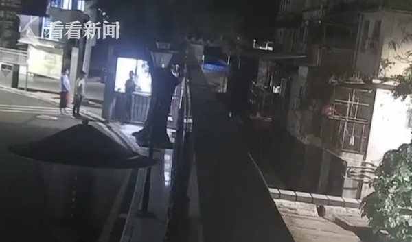 女子手上拎着一个红色的塑料袋,而男子一边讲话还一边手舞足蹈,感觉像是在问路。俩人跟武警哨兵说这里有点宵夜,等一下那边有点东西要过,希望行个方便,就当作没看见,一分钟就行。